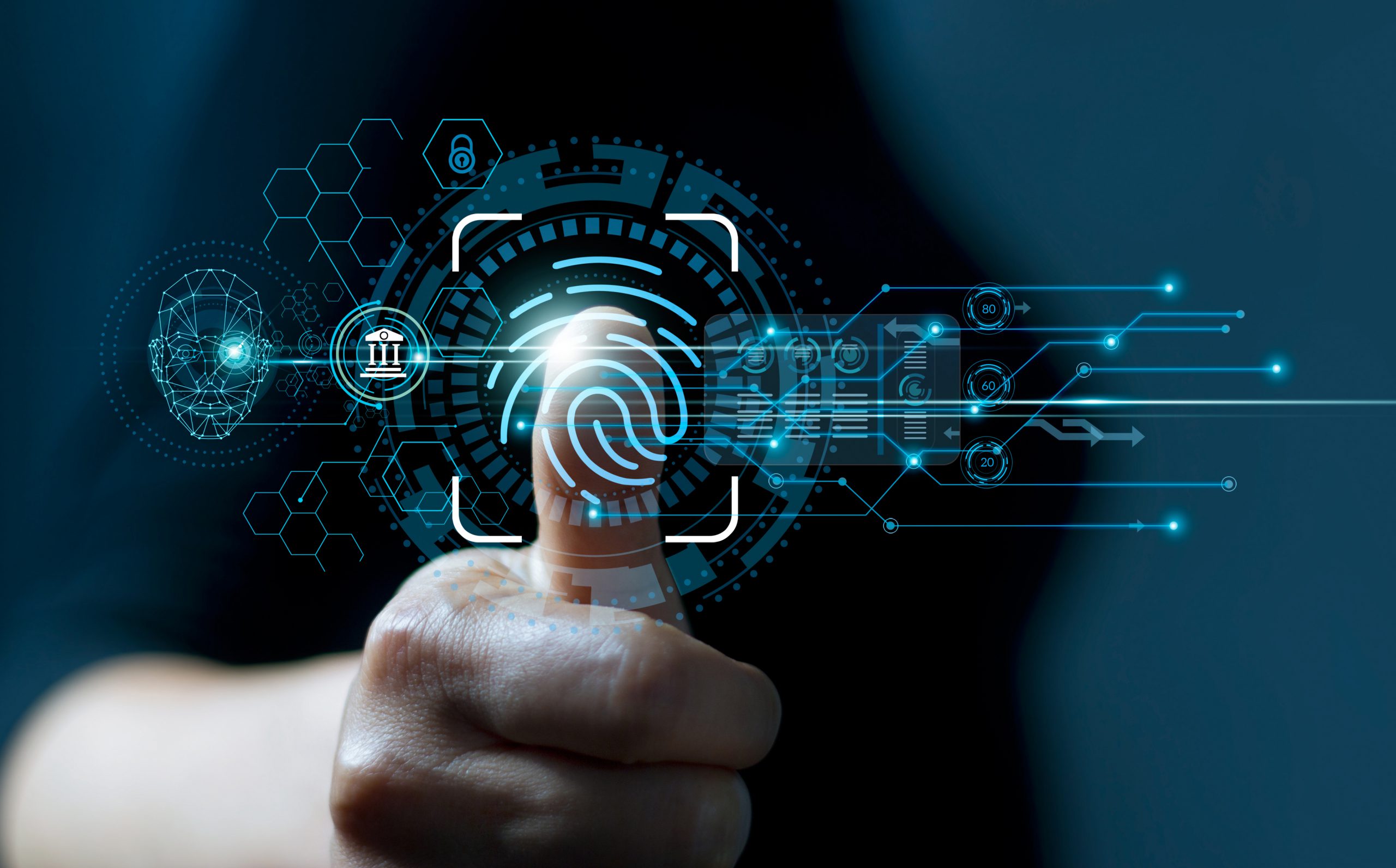 Home / Fingerprint Verification Technology / Businessman,Using,Fingerprint,Indentification,To,Access,Personal,Financial,Data.,Idea