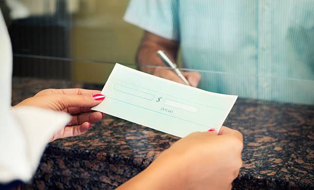 Home / Post offices / Men paying at the bank counter